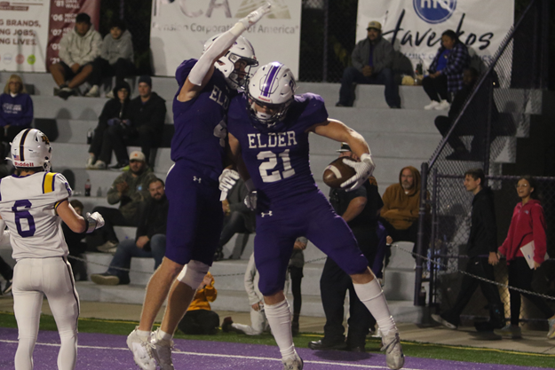 That takeaway set the tone. Elder's offense, which had put up back-to-back 200-plus-yard rushing weeks, went right to the ground game. Behind seniors Carson Kafel, Tyrell Scott, and Caleb Broxterman on the left side of the line, Becker and Estep mashed out yardage until Becker darted seven yards for the opening score late in the first quarter.